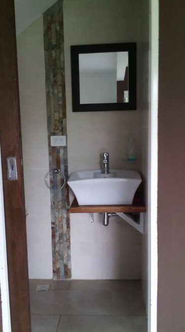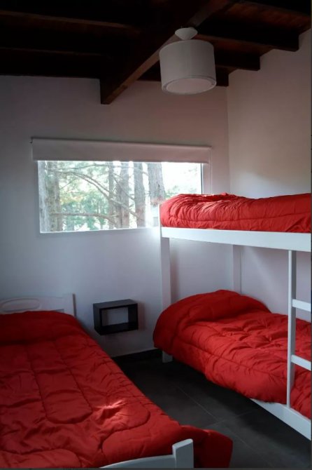 Habitacion con tres camas individuales, ventilador, estufa tiro balanceado, placard y baño completo.